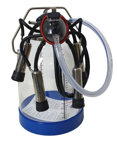 Bańka udojowa z tworzywa sztucznego z aparatem udojowym dla krów 01-6064