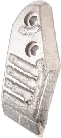 Dłuto prawy Kuhn do pługa Kuhn Huard. Dłuto chroni lemiesz przed ścieraniem w strefie czubka — regularna wymiana dłuta wydłuża życie lemiesza wielokrotnie. Nr kat. 622164SHCN.