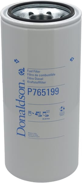 Filtr paliwa — oczyszcza paliwo z cząstek stałych, wody i zanieczyszczeń zanim dotrą do układu wtryskowego. Chroni pompę paliwową i wtryskiwacze przed przedwczesnym zużyciem. Producent Donaldson — certyfikowana jakość filtrów. Nr kat. P765199.