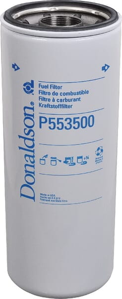 Filtr paliwa — oczyszcza paliwo z cząstek stałych, wody i zanieczyszczeń zanim dotrą do układu wtryskowego. Chroni pompę paliwową i wtryskiwacze przed przedwczesnym zużyciem. Producent Donaldson — certyfikowana jakość filtrów. Nr kat. P553500.