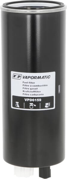 Filtr paliwa — oczyszcza paliwo z cząstek stałych, wody i zanieczyszczeń zanim dotrą do układu wtryskowego. Chroni pompę paliwową i wtryskiwacze przed przedwczesnym zużyciem. Producent Vapormatic — certyfikowana jakość filtrów. Nr kat. VPD6159.