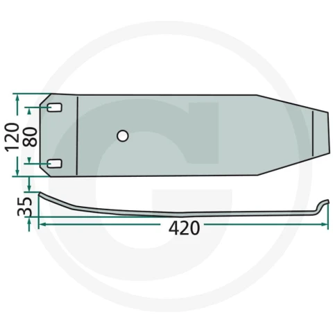 Płoza ślizgowa do kosiarki dyskowej lub rotacyjnej. Hartowana stal lub tworzywo wzmocnione — chroni głowice tnące podczas koszenia. Nr kat. 64755911400F.