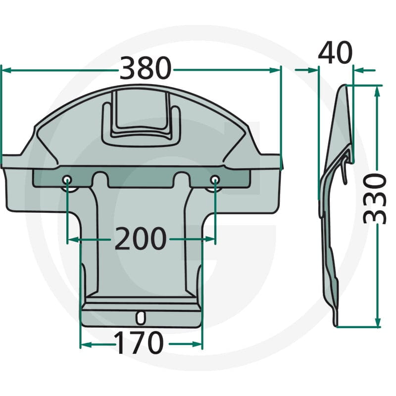 Płoza ślizgowa do kosiarki dyskowej lub rotacyjnej. Hartowana stal lub tworzywo wzmocnione — chroni głowice tnące podczas koszenia. Nr kat. 647882520170700.