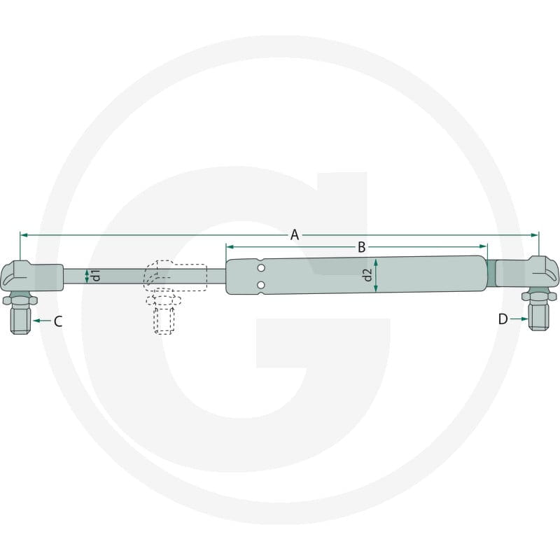 GRANIT Siłownik gazowy GRANIT 65498111 to sprężyna gazowa (siłownik gazowy) do unoszenia i amortyzowania pokryw, drzwi i klap w kabinach ciągników oraz obudowach maszyn rolniczych. Sprężyna utrzymuje pokrywę w pozycji otwartej bez konieczności podtrzymywania ręcznego.
