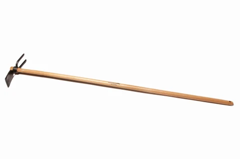 Motyczka 2-stronna kuta, stylisko 130 cm, ręcznie wykonana przez Krumpholz ze stali narzędziowej i styliska jesionowego. Przeznaczona do pielenia, spulchniania i uprawy gleby. Nr kat. KRUMP_1113.