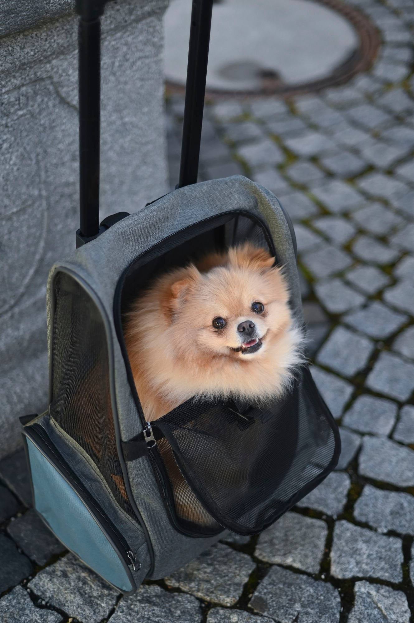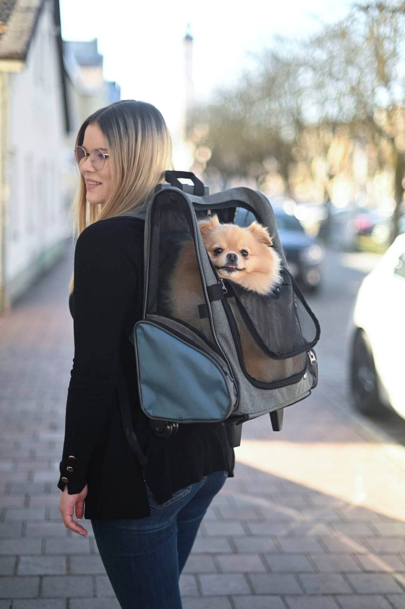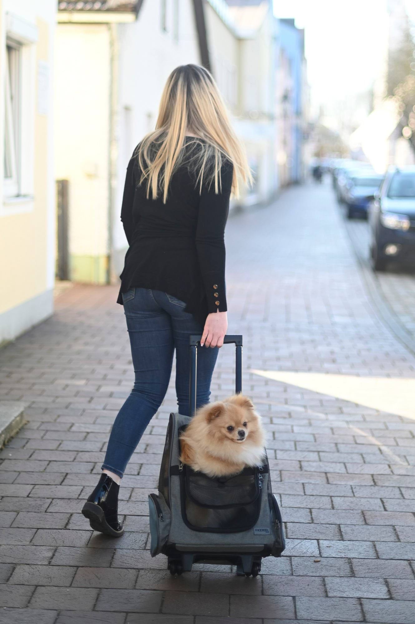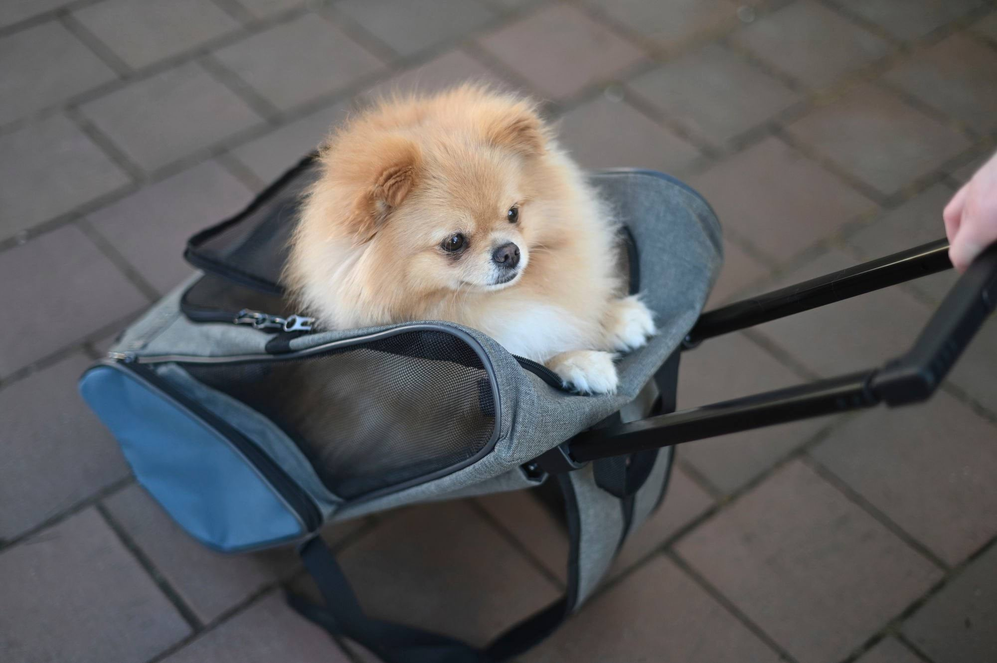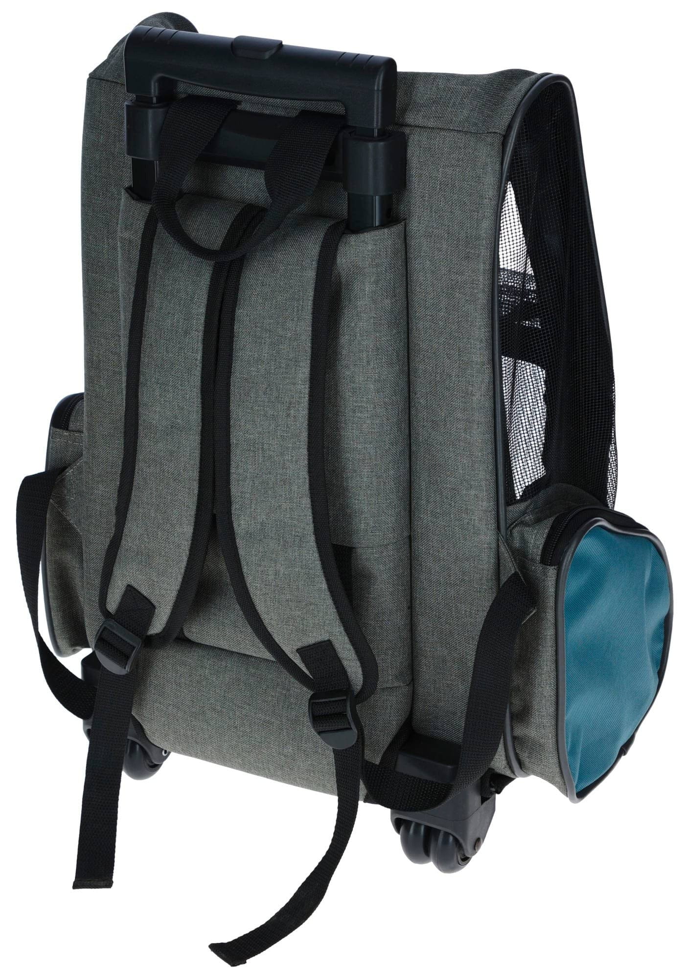 Torba podróżna na kółkach dla psa Vacation, 41 x 26 x 55 x 103 cm, szaro/niebieska, Kerbl to torba transportowa lub klatka dla psa nr kat. 80570. Zapewnia bezpieczny i wygodny transport podczas wizyt u weterynarza, podróży i wyjazdów.