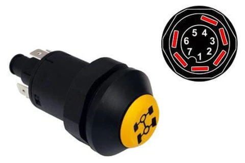 Włącznik przedniego napędu osi to część wyposażenia kabiny ciągnika do kabiny ciągnika rolniczego. Oryginalne części i zamienniki OEM zapewniają pełną zgodność z instalacją ciągnika.